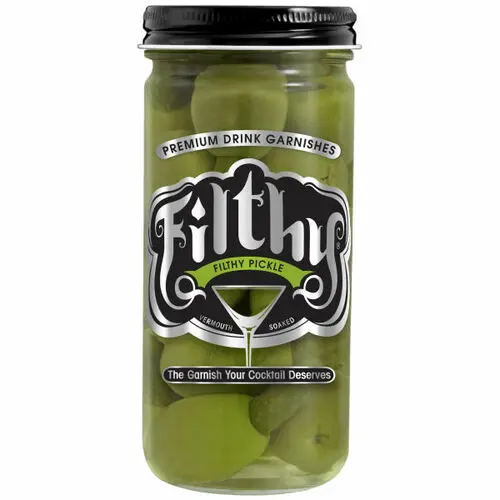 A beautiful, fleshy, queen olive is the perfect place to put a firm, Filthy little pickle. Bathed in our uniquely blended Filthy filtered brine, the Filthy Pickle will add a totally different dimension to your drink. The Filthy Pickle is the Bloody Mary and Martini garnish choice for some of the best bars in the world.