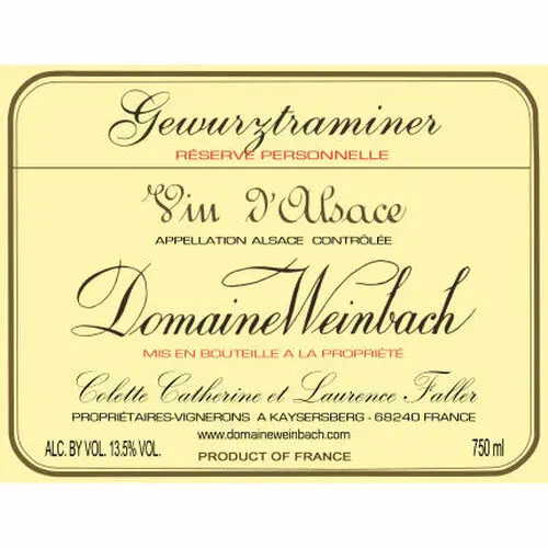 Domaine Weinbach Alsace Gewurztraminer Reserve Personnelle 2018